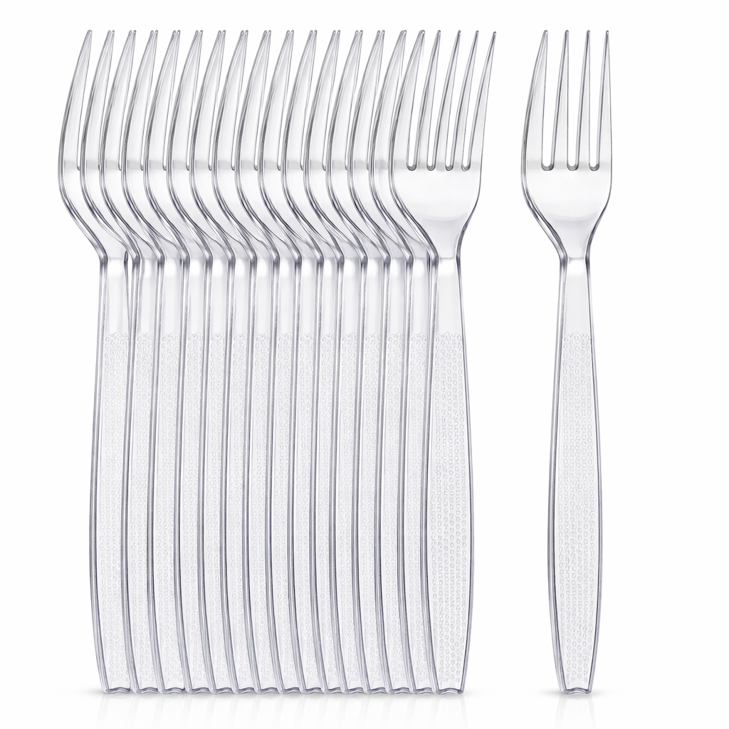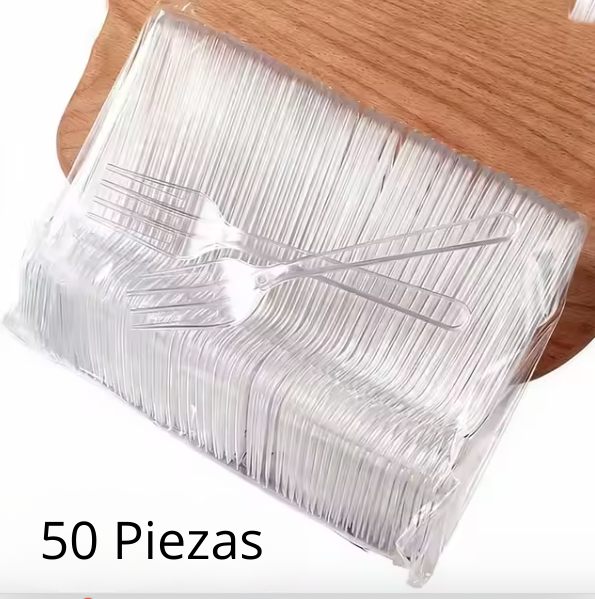 Set de 100 Tenedores Desechables Transparentes y Resistentes